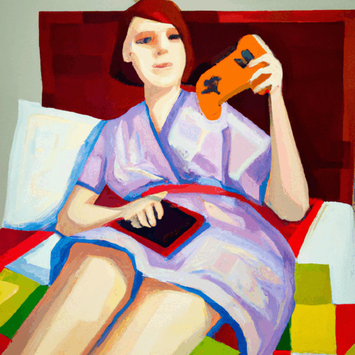 This one-of-a-kind NFT depicts a stunning woman relaxing in her cozy bed, controller in hand as she indulges in a video game marathon. With her striking beauty and fierce determination, she exudes confidence and charm as she dominates the virtual battlefield. The rich details in this artwork capture the essence of a modern-day gaming goddess, with her bedspread strewn with pillows and blankets.